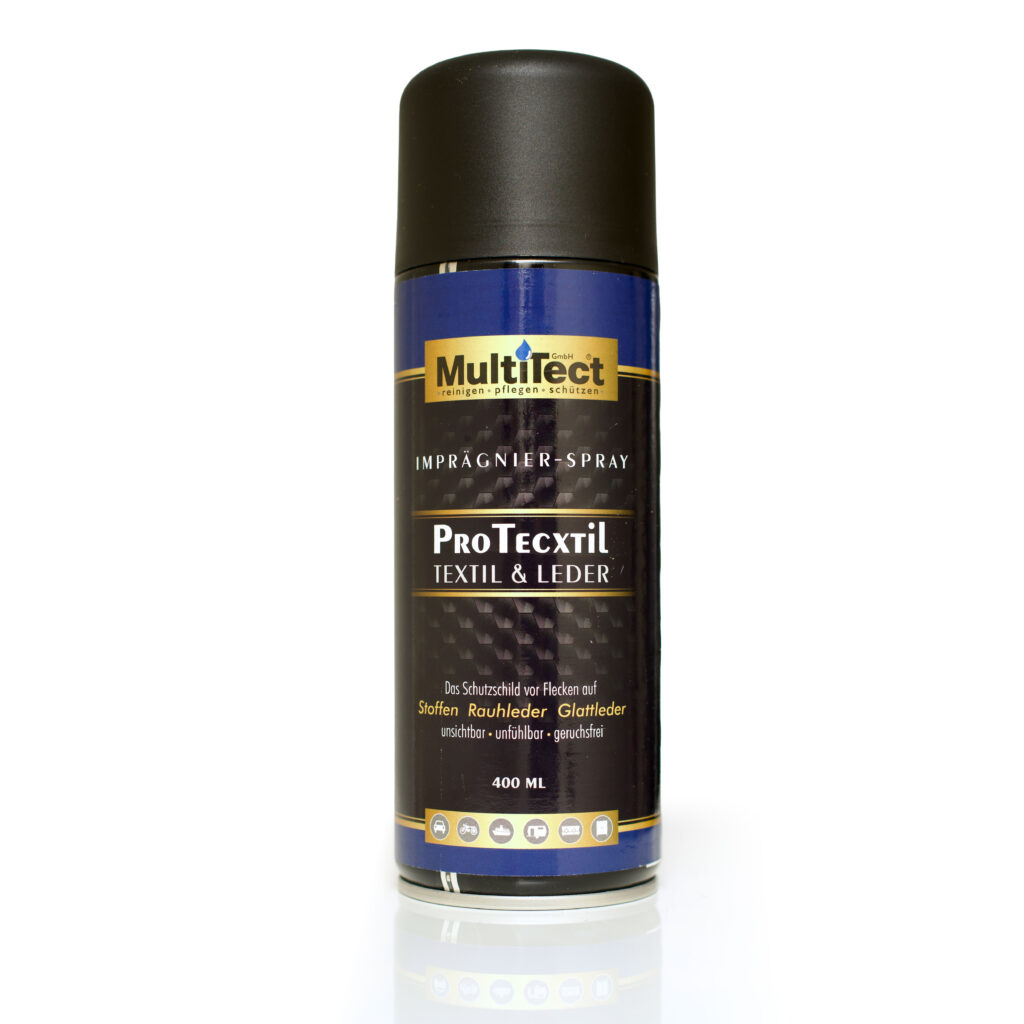 MultiTect ProTecxtil ist das Schutzschild vor Flecken auf Stoffen, Rauh- und Glattleder, unsichtbar, unfühlbar und nach Austrocknung geruchsfrei. Ideal für Kfz, Boot, Wohnwagen, Caravan, Sonnenschutz, Gartenmöbel uvm.. Flüssigkeiten perlen einfach ab, Feststoffverschmutzungen lassen sich quasi ausbürsten und der Verschleiss durch Abnutzung verringert sich. Das Material behält seine ursprüngliche Farbgebung länger, Stoffe und Leder werden ansehnlich und werden verschleissfester. Inhalt 400 ml Aerosoldose